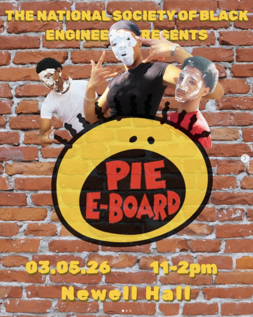 Join NSBE tomorrow from 11 AM – 2 PM at Newell Hall for our Pie Event! Come out, support, and maybe even throw a pie at your favorite member